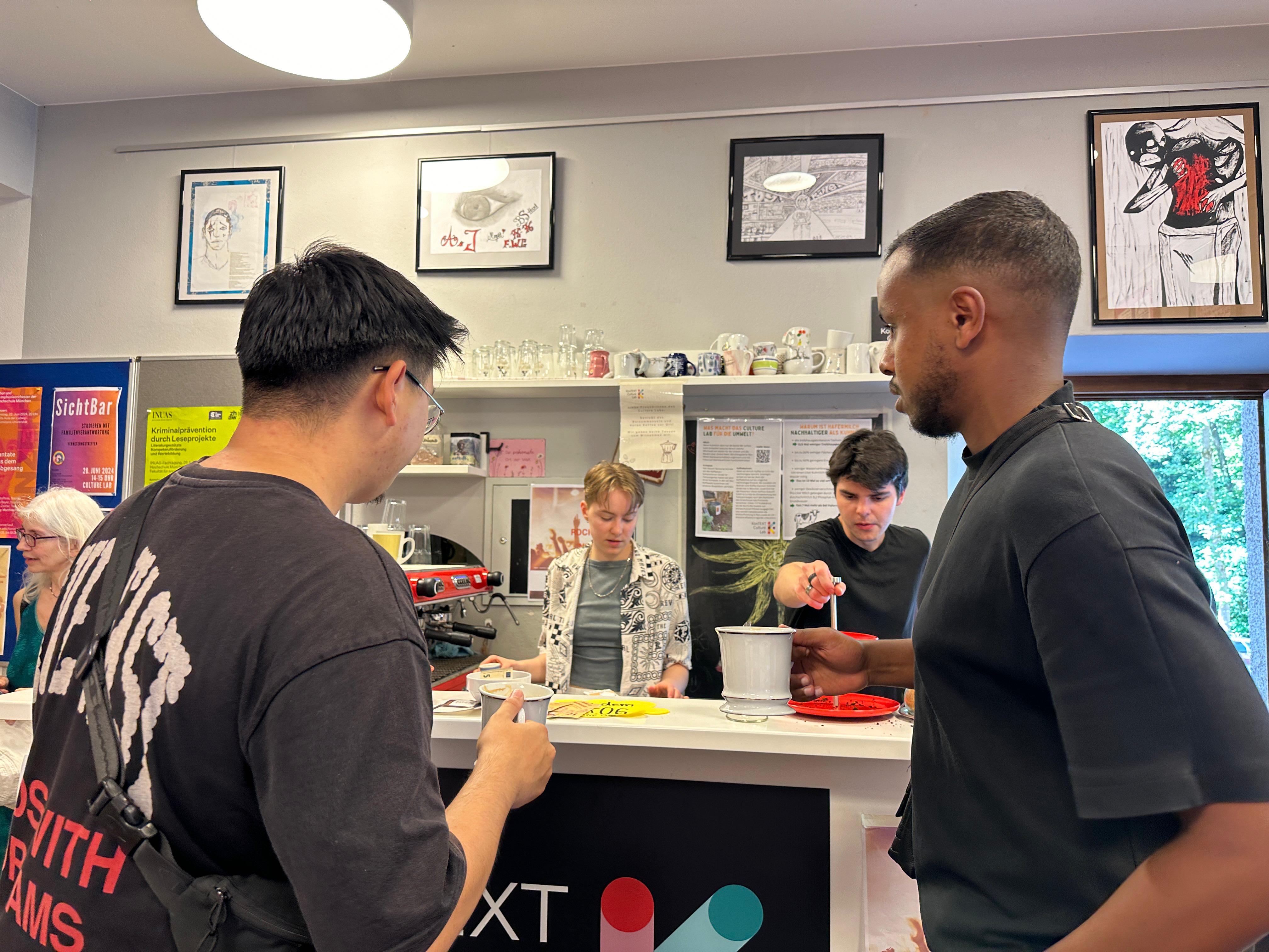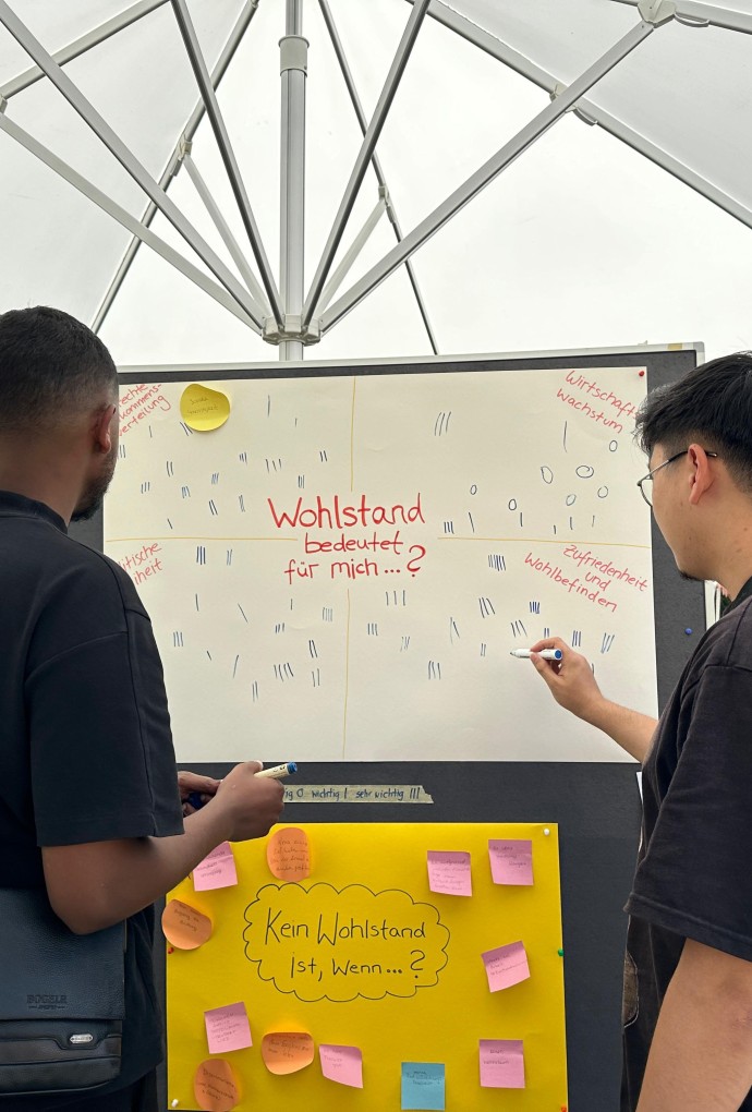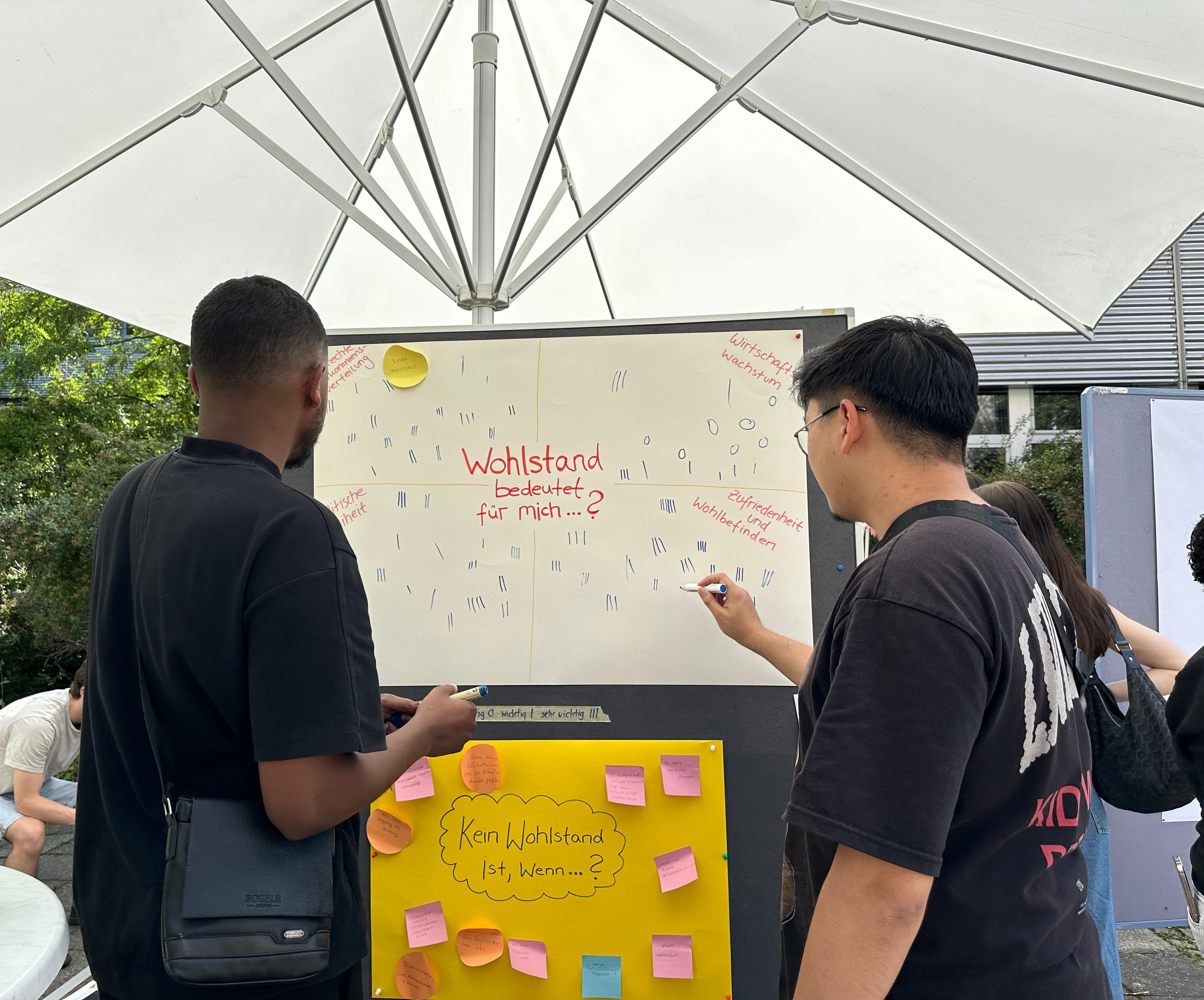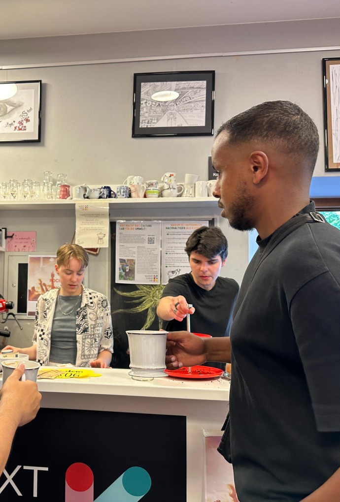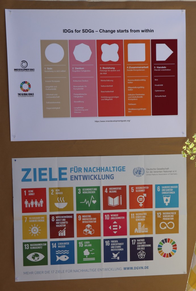 Der Besuch im nachhaltig angelegten Biodiversitätsgarten mit Urban Gardening, innovativem Bewässerungssystem, Insektenhotels sowie Kräuterbeeten erfreute sich großer Beliebtheit und war mit einer wunderbaren Sommerfrische verbunden. Ein besonderes Highlight war die Ausstellung „Gesichter des Friedens“ im Culture Lab, bei der u.a. nachhaltiger Kaffee verkostet werden konnte. Hier wurden auch die Ergebnisse des jüngsten Demokratiecafés ausgestellt.