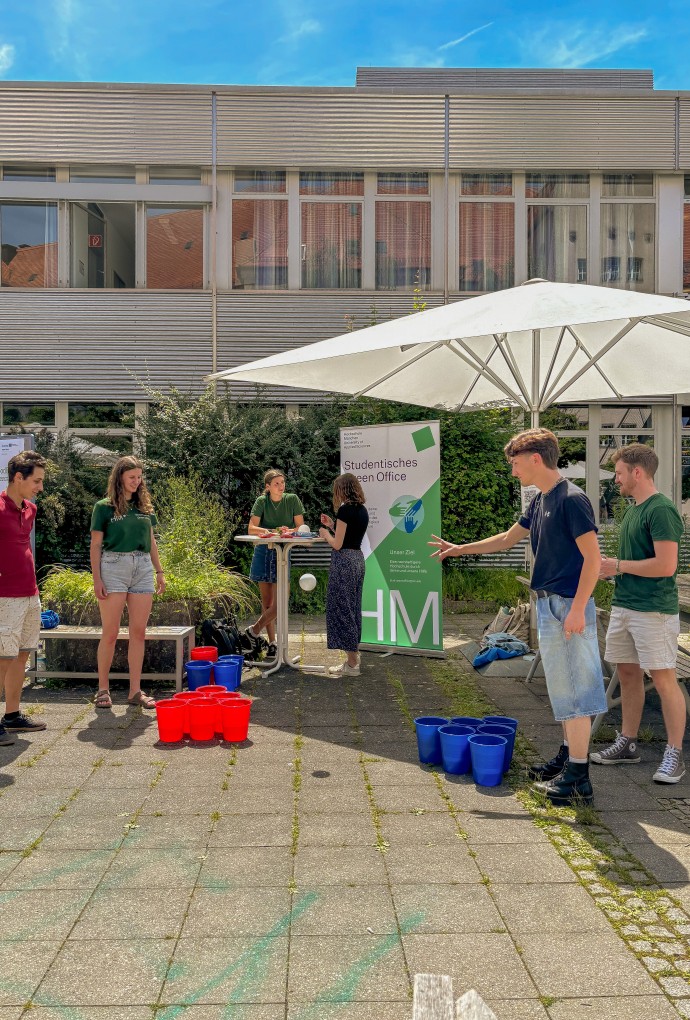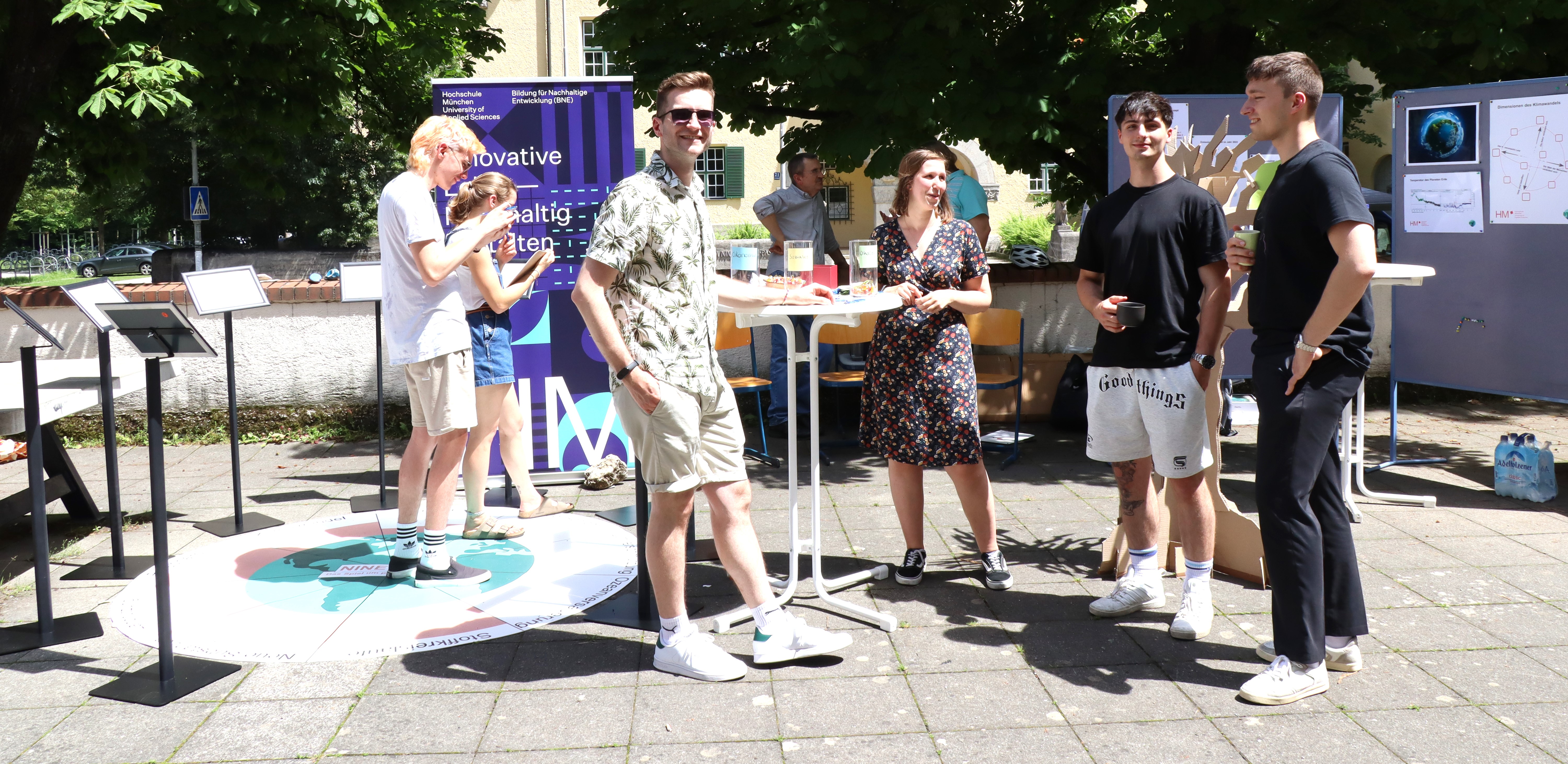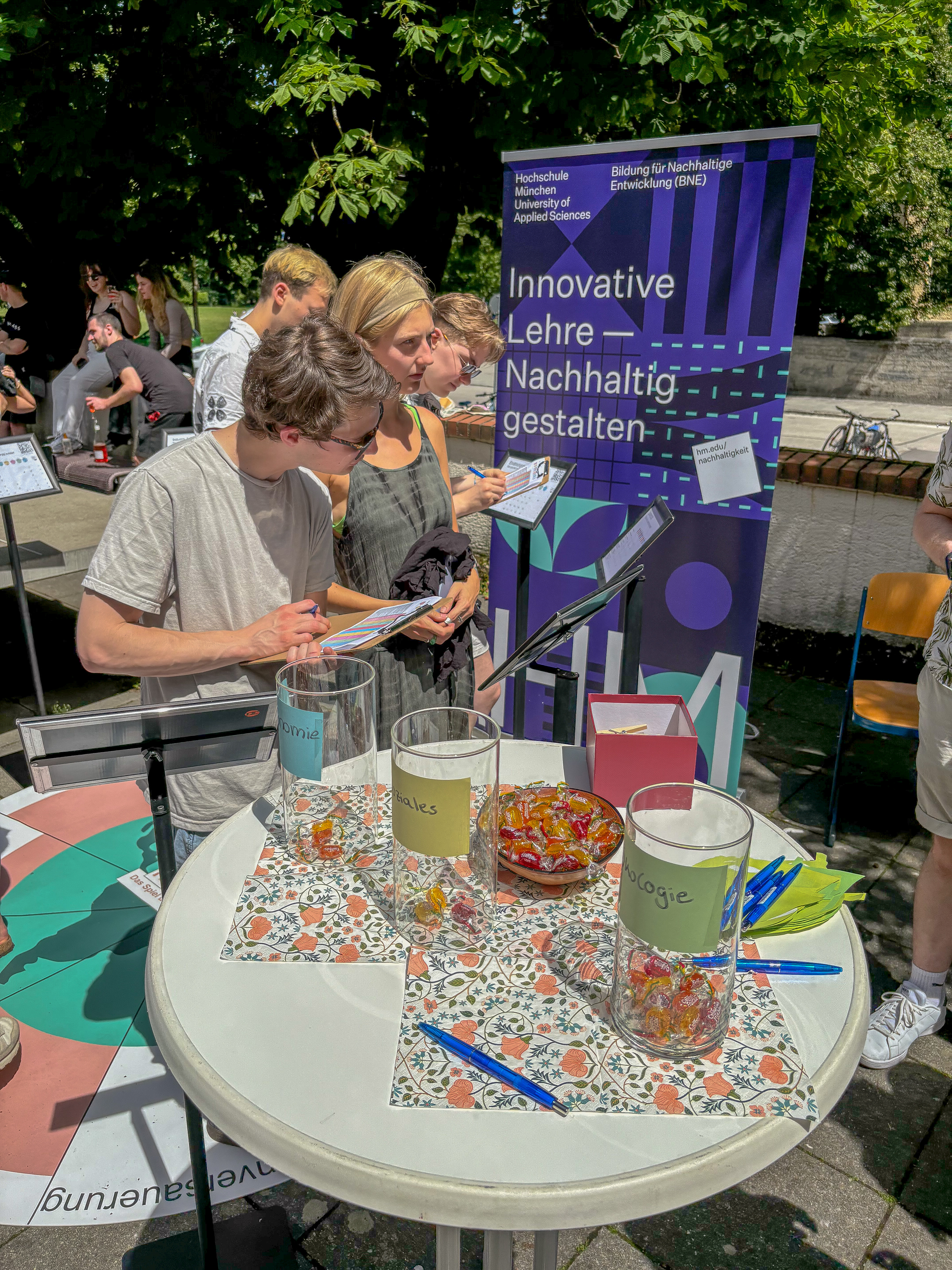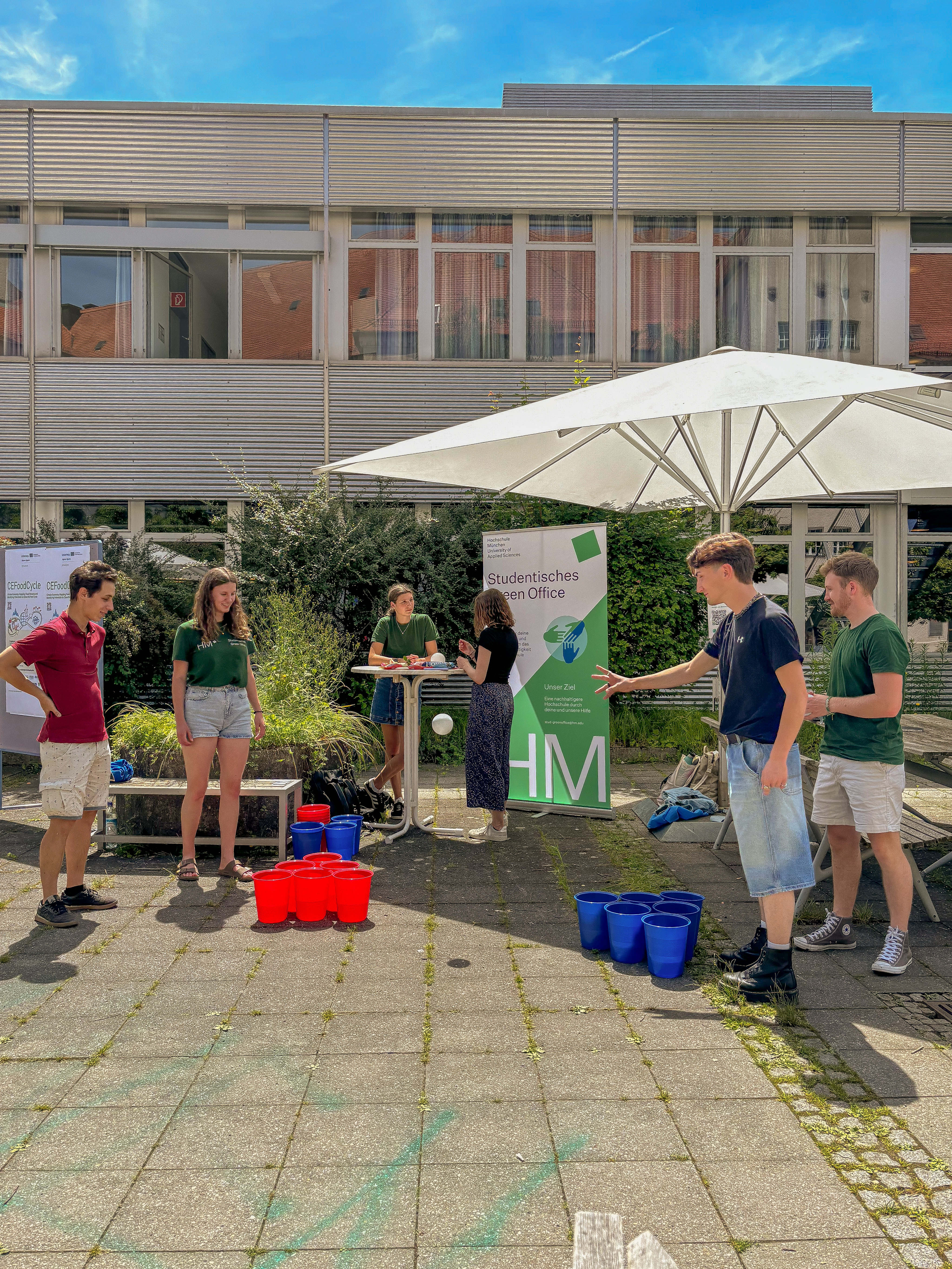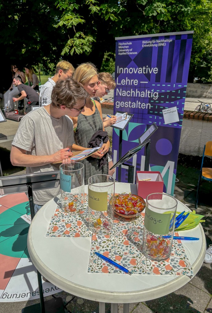 Ein wichtiger Bestandteil des Festes war die Vorstellung des ÖKOPROFIT-Projekts am Green Campus Pasing als aktuell größtem Projekt, unterstützt von den Nachhaltigkeitsmanagerinnen der HM, welche die Sustainable Development Goals (SDGs) und dieInner Development Goals (IDGs) anschaulich machten und zum Austausch zur hochschulweiten Nachhaltigkeitsstrategie anregten. Das Team BNE der Innovativen Lehre und der Klimaschutzmanager der HM luden zu Spielen rund um die Themen Nachhaltigkeit und Klimaschutz ein und informierten über das Engagement der Hochschule in diesen Bereichen.