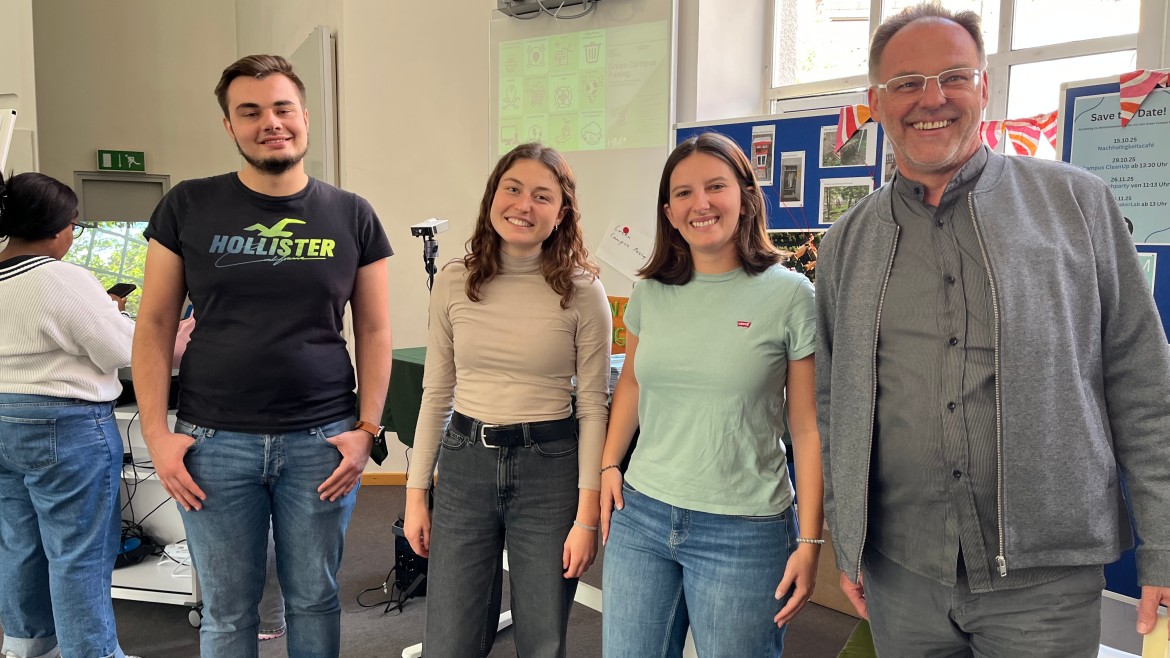 Zahlreiche Bachelor- und Masterstudierende nutzten die Gelegenheit, sich am Green Campus-Stand über Nachhaltigkeitsaktionen und Mitmachmöglichkeiten zu informieren.